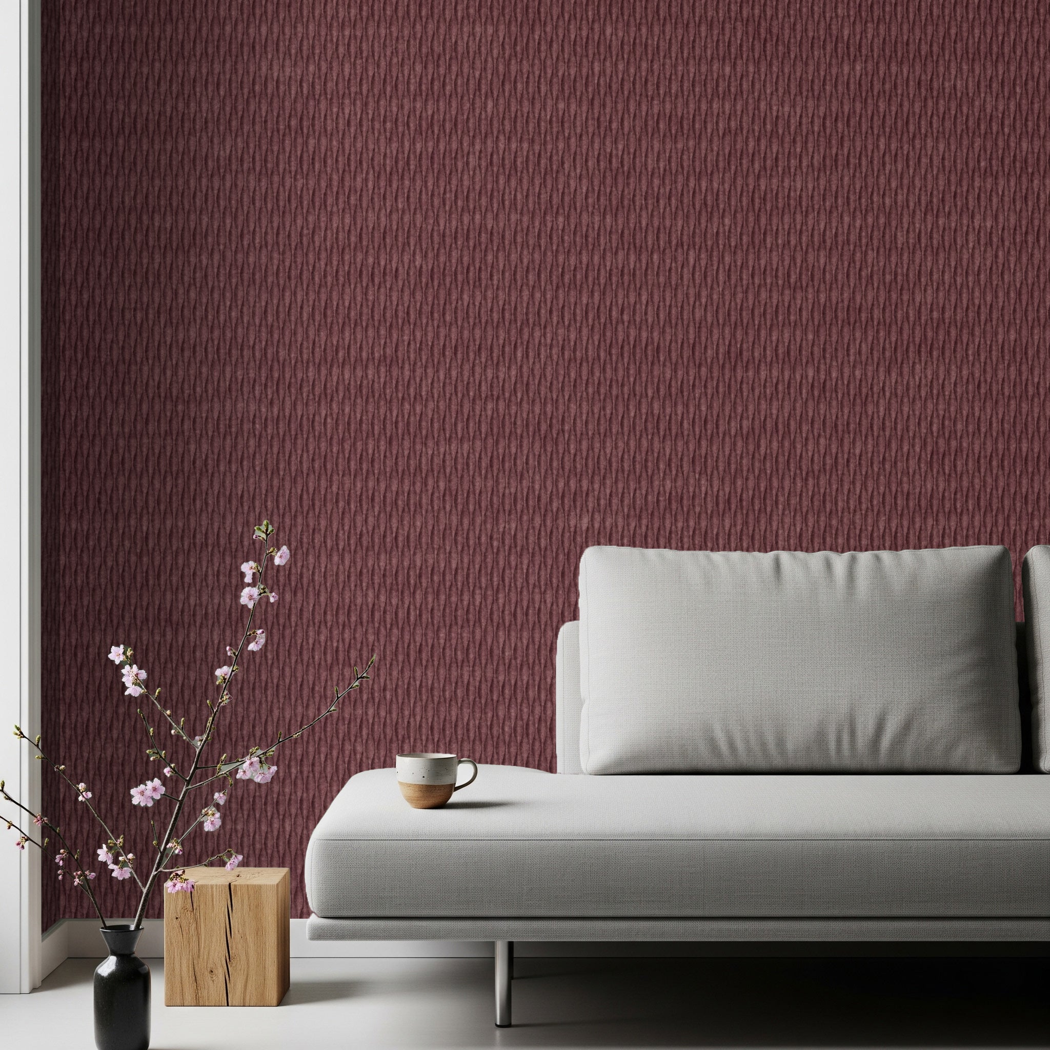 The Scales Panel features a sophisticated, 3D pressed felt surface that creates a dense, woven texture across your walls. This intricate, overlapping pattern adds a rich tactile quality and deep visual character to modern rooms, making it a standout feature in any contemporary setting.